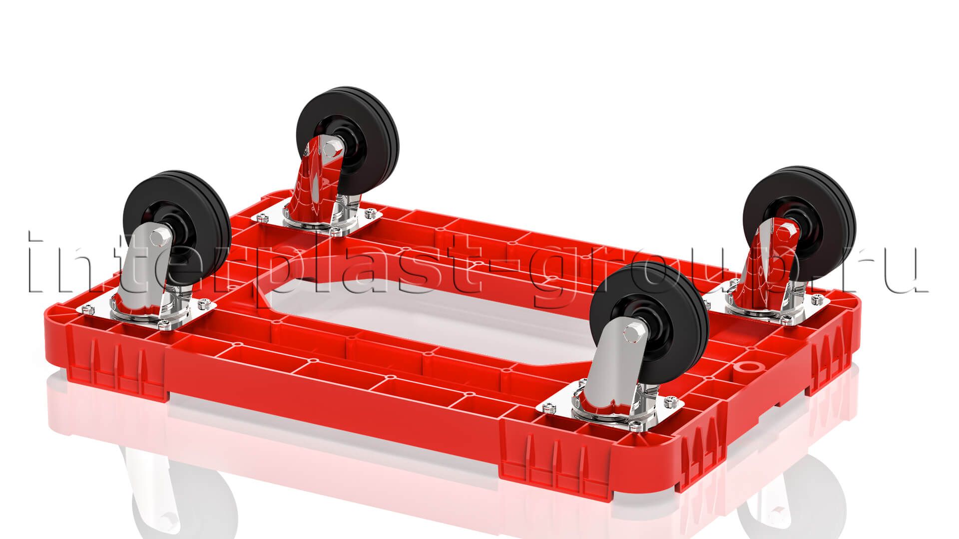Тележка пластиковая с отверстием без тормозов красная в Тюмени