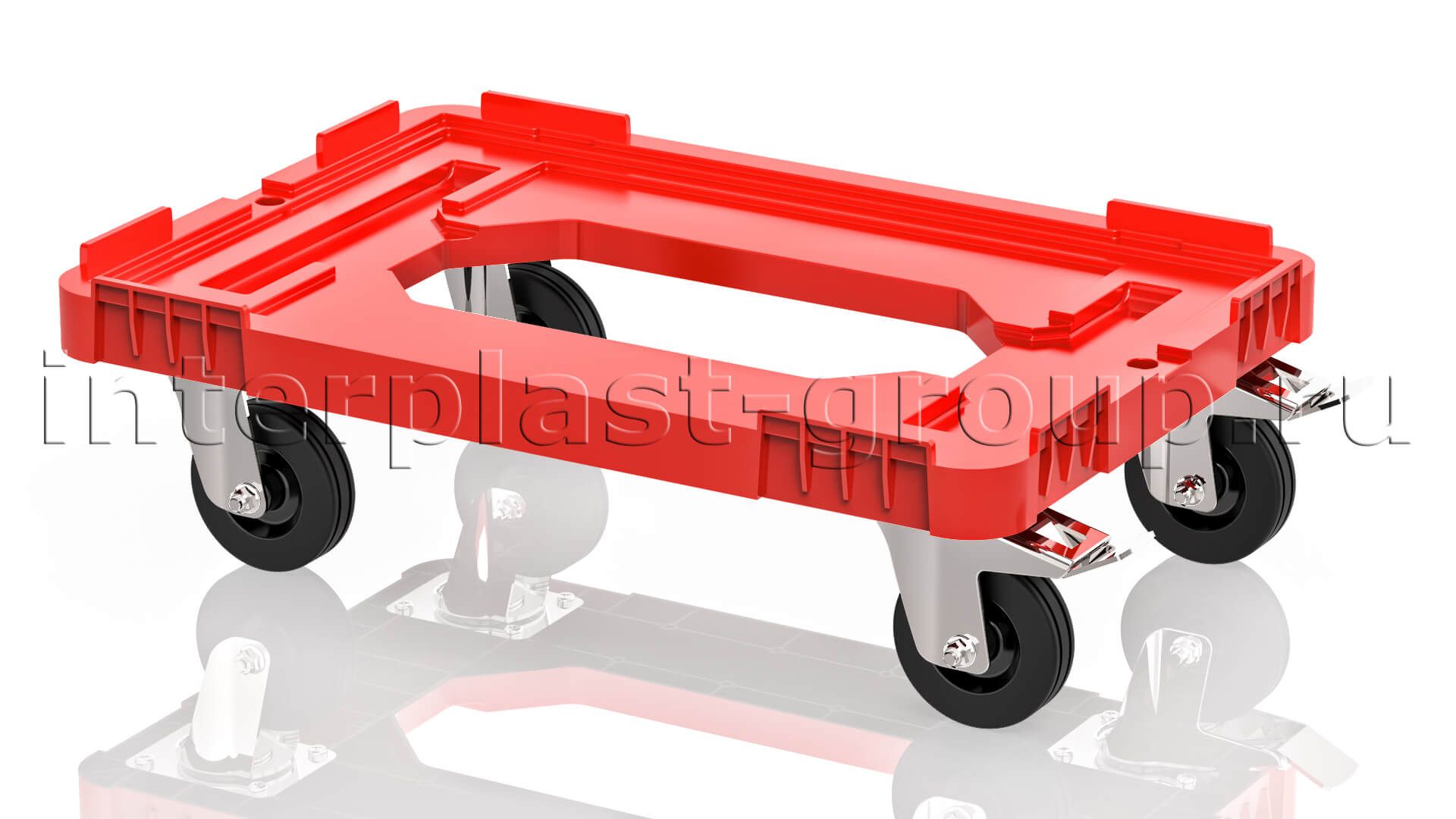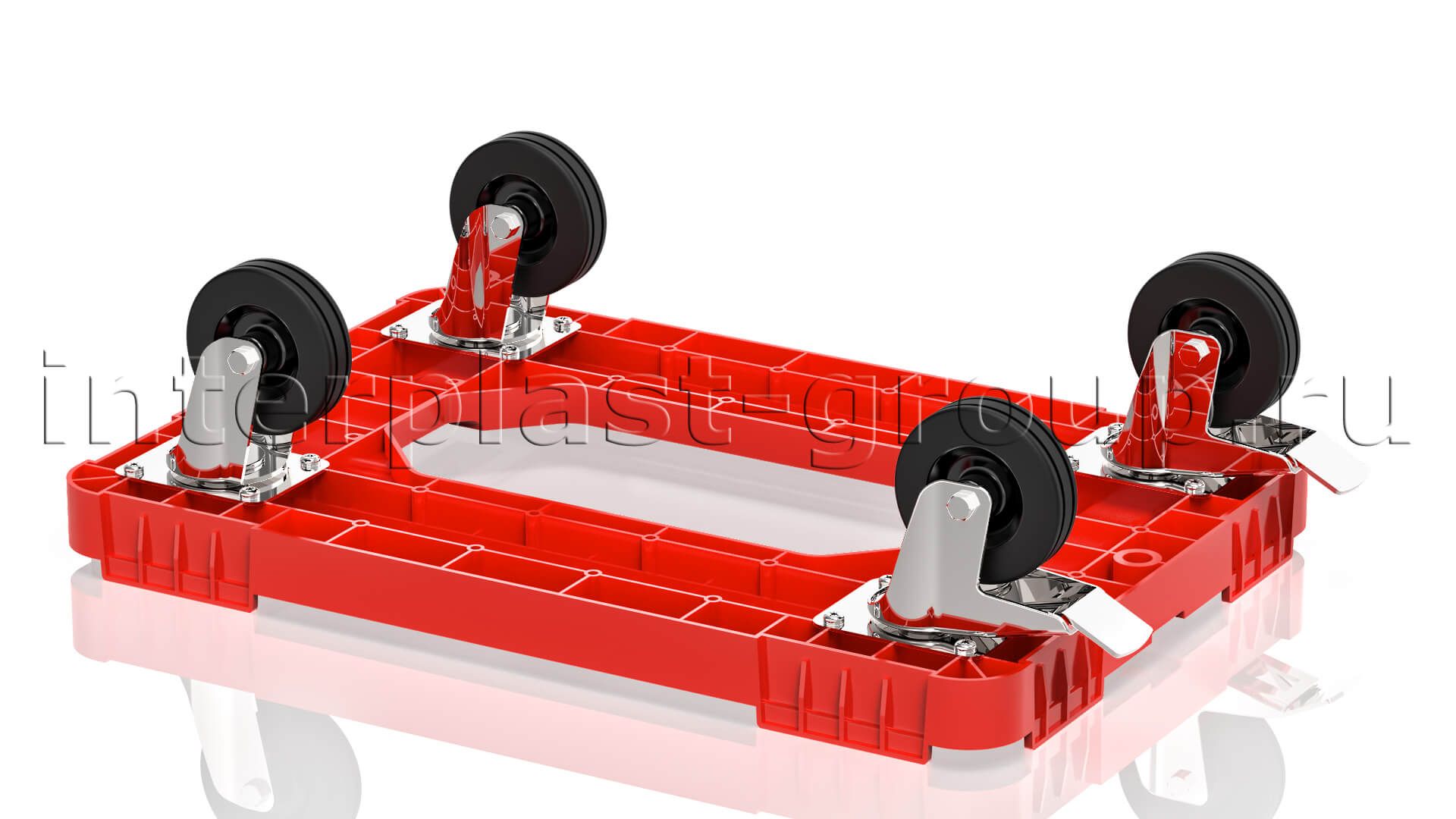 Тележка пластиковая с отверстием 2 колеса с тормозом красная в Тюмени