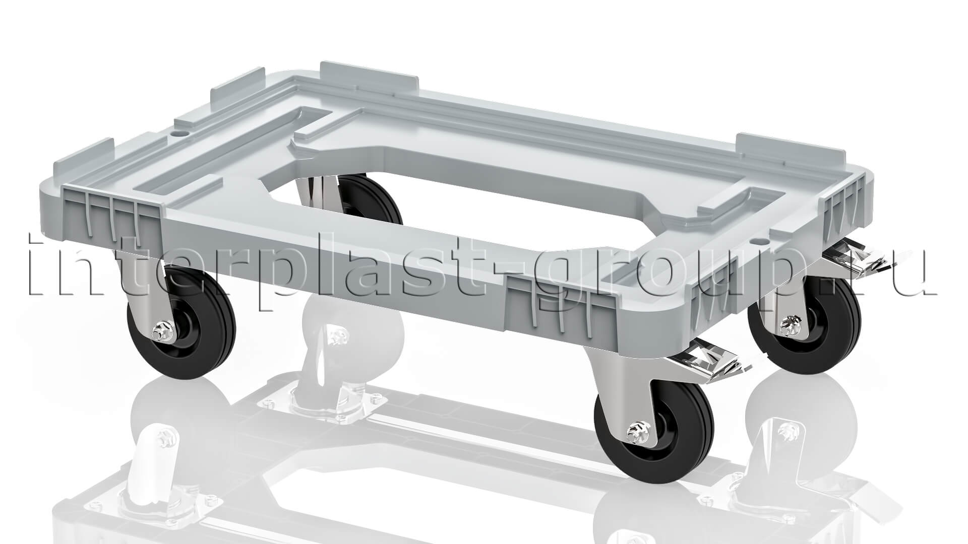 Тележка пластиковая с отверстием 2 колеса с тормозом усиленная серая в Тюмени